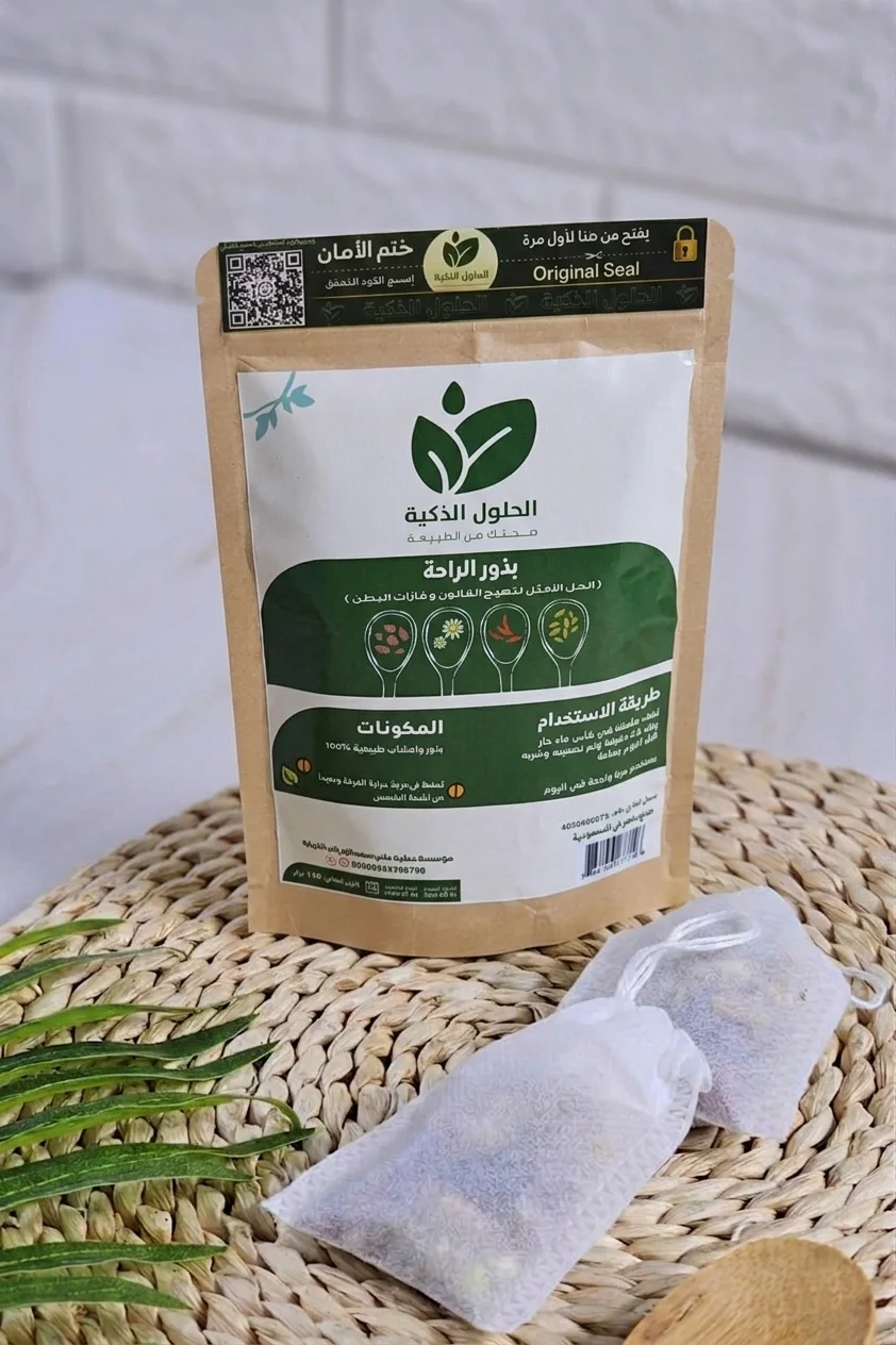 - أضف ملعقة صغيرة من بذور الراحة إلى كوب ماء ساخن